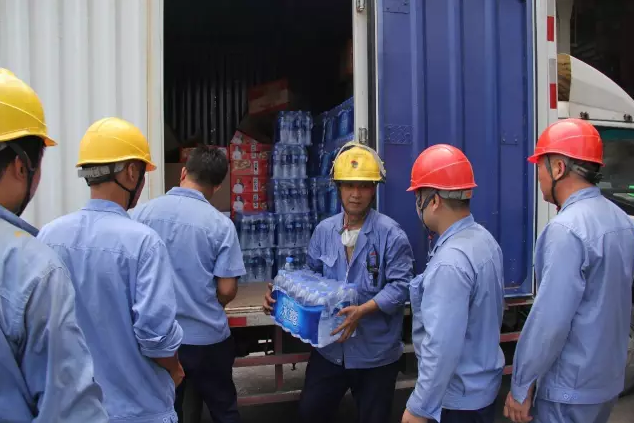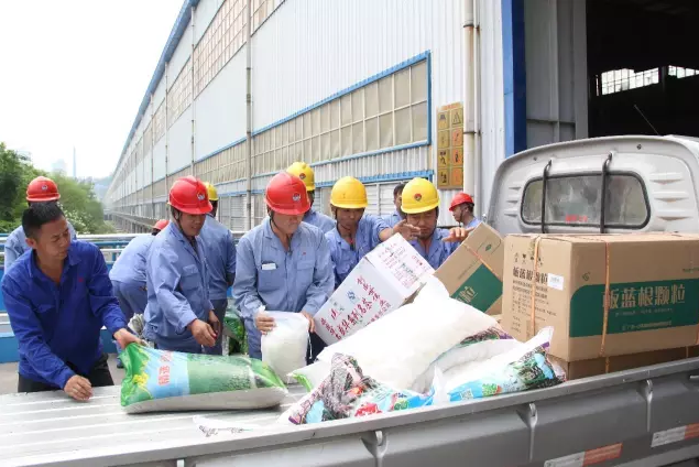 7月18日上午,巩义市总工会党组书记、常务副主席杨智伟一行,在集团公司党委副书记、工会主席白学成的陪同下,冒着酷暑到豫联工业园区亲切看望慰问公司一线员工,为在高温下坚守岗位的一线员工送去冰糖、绿豆、板蓝根和凉茶等防暑降温物品,并嘱咐大家注意防暑,搞好安全生产。